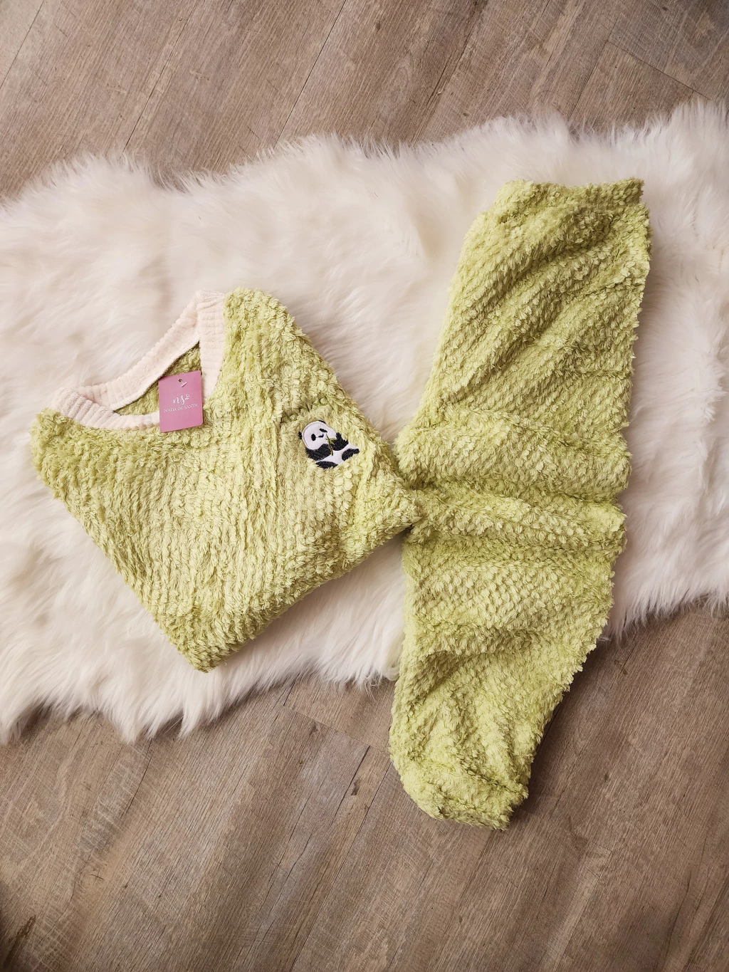 Pijama Polar Soft Pandita 🐼: ¡La opción perfecta para los días fríos! Este pijama de polar soft presenta un encantador tramado y cuenta con puños en la cintura, así como en las mangas y bota, asegurando un ajuste cómodo y cálido.